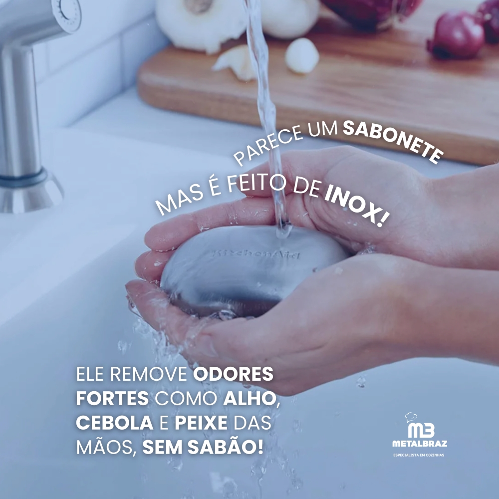 | Cansado de cheiros persistentes nas mãos após cozinhar ou manusear alimentos como alho, cebola e peixe? Apresentamos o Sabonete Mágico de Inox, a solução inovadora e sustentável para neutralizar odores de forma eficaz! |