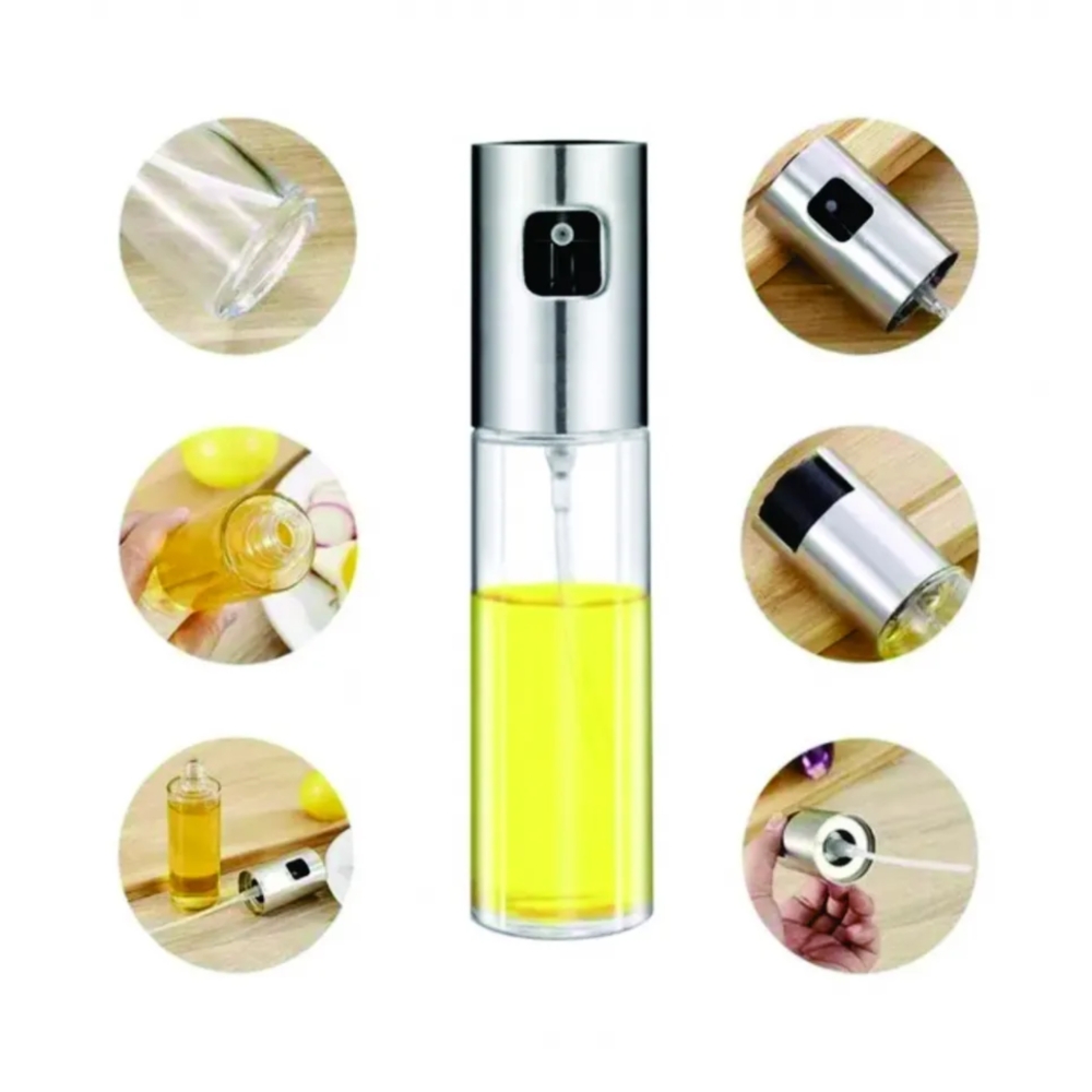 | Este é um borrifador multiuso com um design elegante. Ele é ideal para usar na cozinha, para borrifar azeite, vinagre, molho de soja, ou outros líquidos em saladas, na airfryer, ou para untar frigideiras e assadeiras. O recipiente é de vidro transparente, o que permite ver facilmente o conteúdo e o nível do líquido. A tampa e a bomba são de aço inoxidável, conferindo um visual moderno e durável. |
