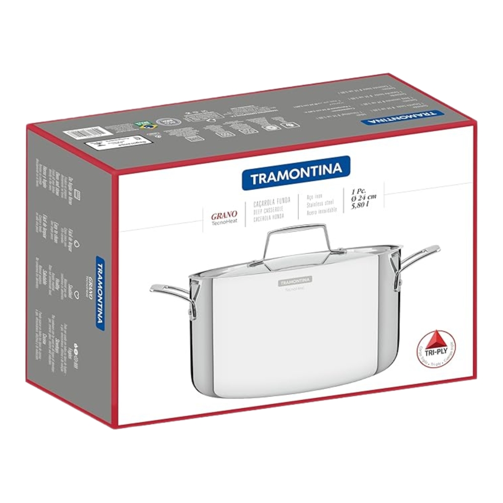 | Cozinhe com excelência e elegância. A Caçarola Grano Tramontina de 24 cm tem fundo triplo para cozimento rápido e uniforme, mantendo o sabor dos seus pratos. Seu design em aço inox vai brilhar na sua cozinha. |