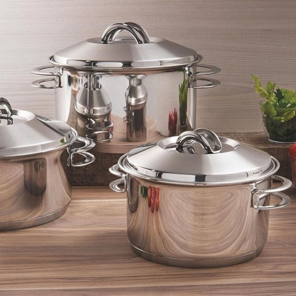 Totalmente feitas em aço inox, não soltam resíduos nos alimentos, garantindo uma cozinha mais saudável. O design sem cantos facilita a limpeza, e o acabamento em alto brilho proporciona um toque de elegância. |
