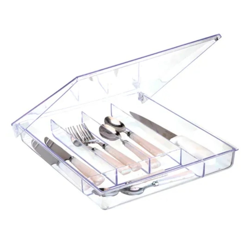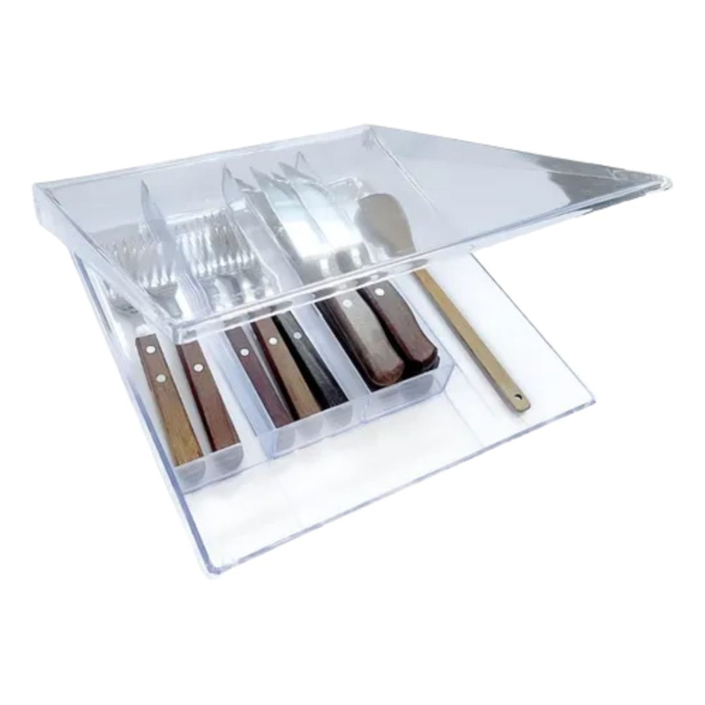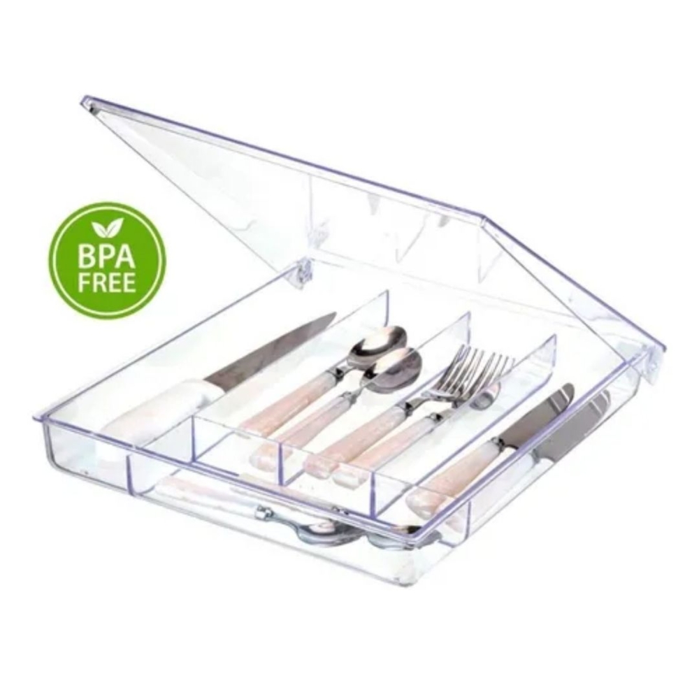 Com cinco divisórias, o organizador permite separar e categorizar garfos, facas, colheres e outros utensílios, mantendo tudo em ordem e fácil de encontrar.
