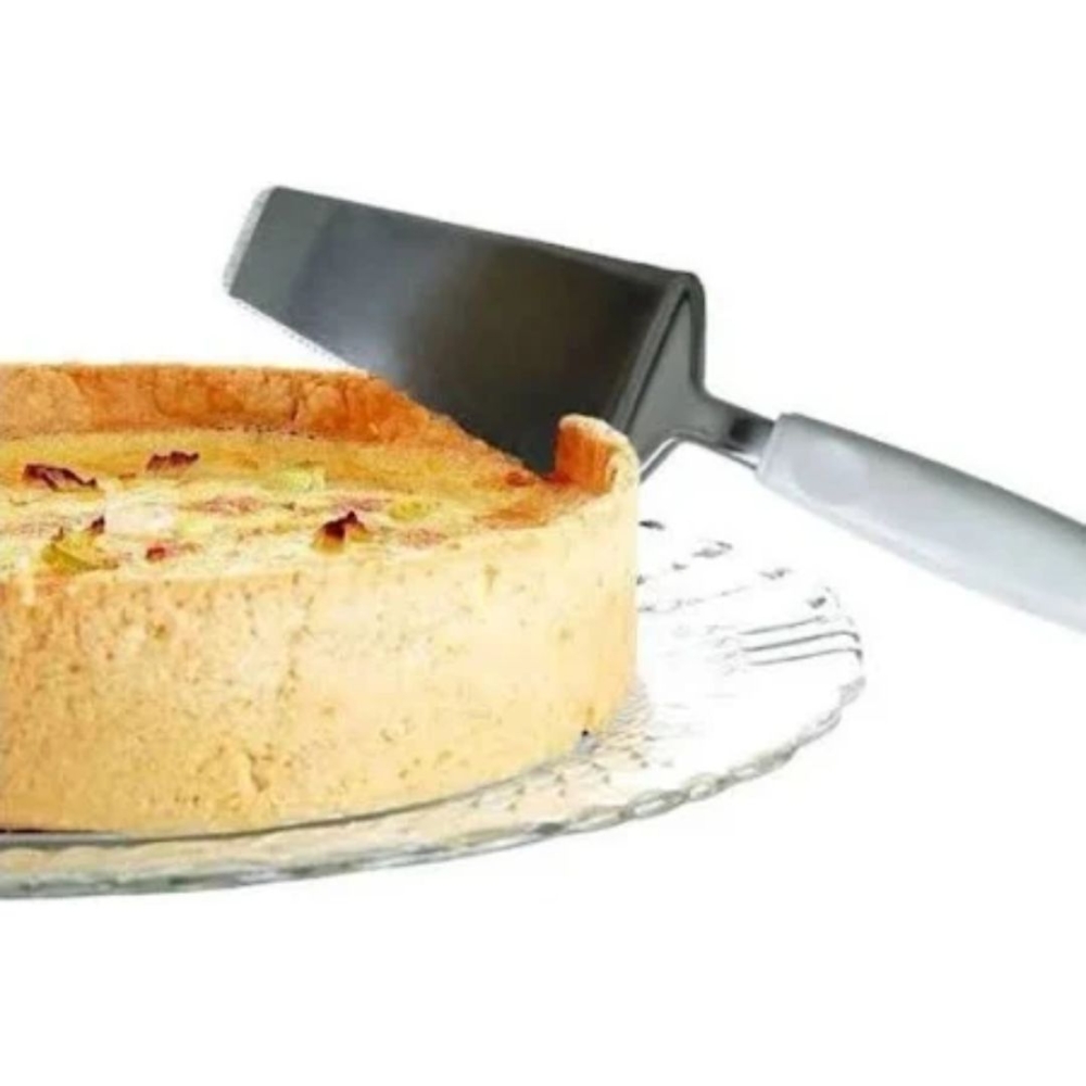 | Projetada para cortar e servir bolos, tortas e sobremesas, sua lâmina lateral serrilhada desliza facilmente pelas massas, enquanto a superfície lisa permite servir as fatias de maneira elegante. |