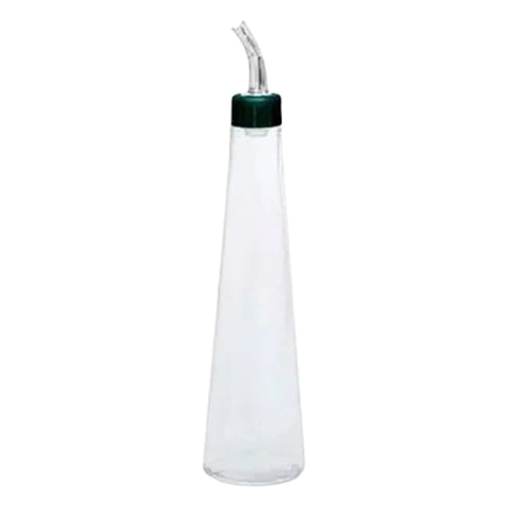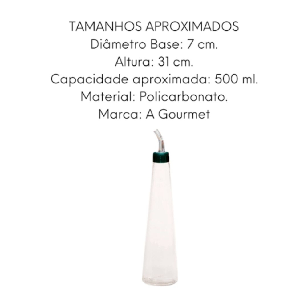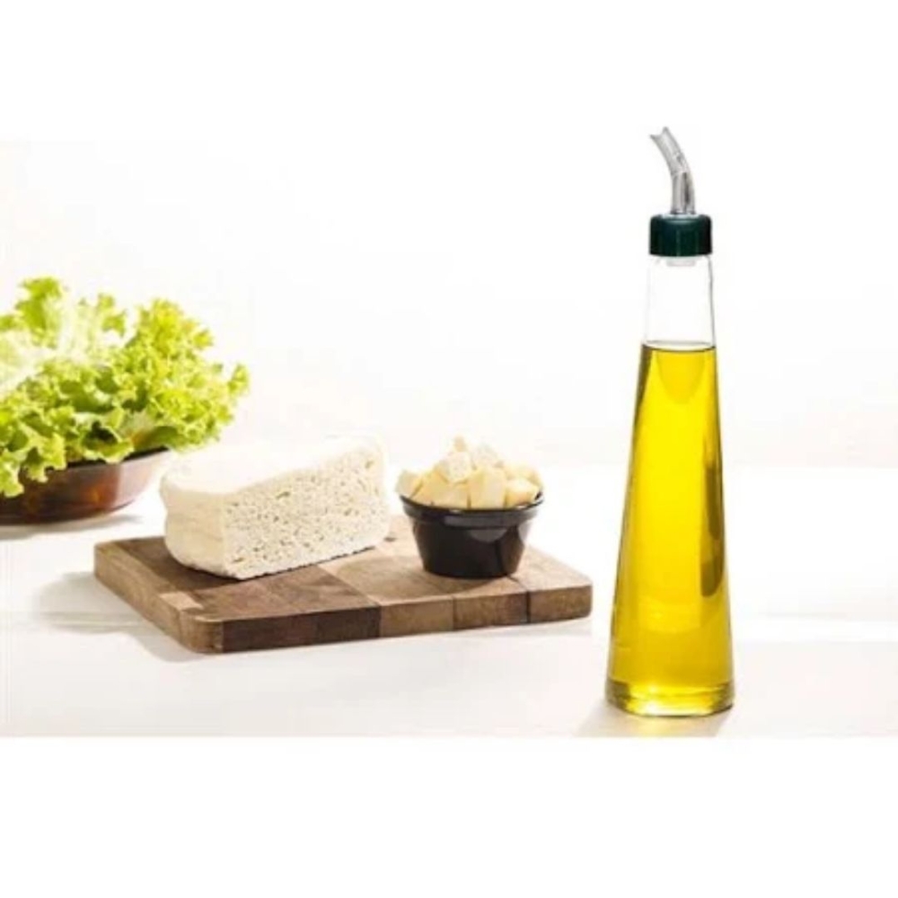 É um utensílio prático e fácil de usar, com um bico dosador para servir azeite ou vinagre de forma controlada, evitando o desperdício.