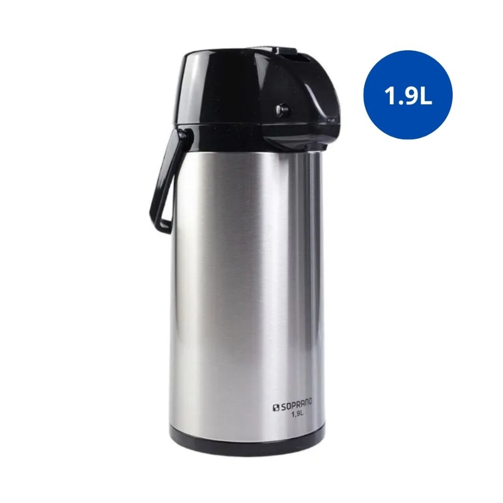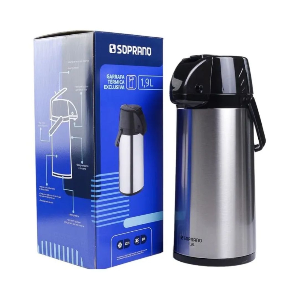 | A Garrafa Térmica Soprano, com sua ampla capacidade de 1,9 litros, é a solução ideal para servir bebidas quentes ou frias em grandes quantidades, perfeita para famílias grandes, escritórios, eventos ou recepções. |
