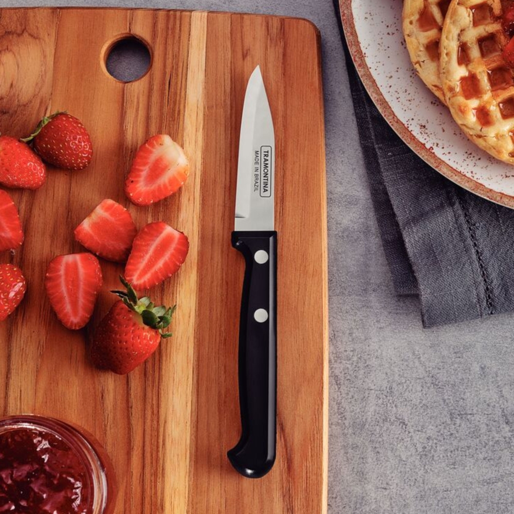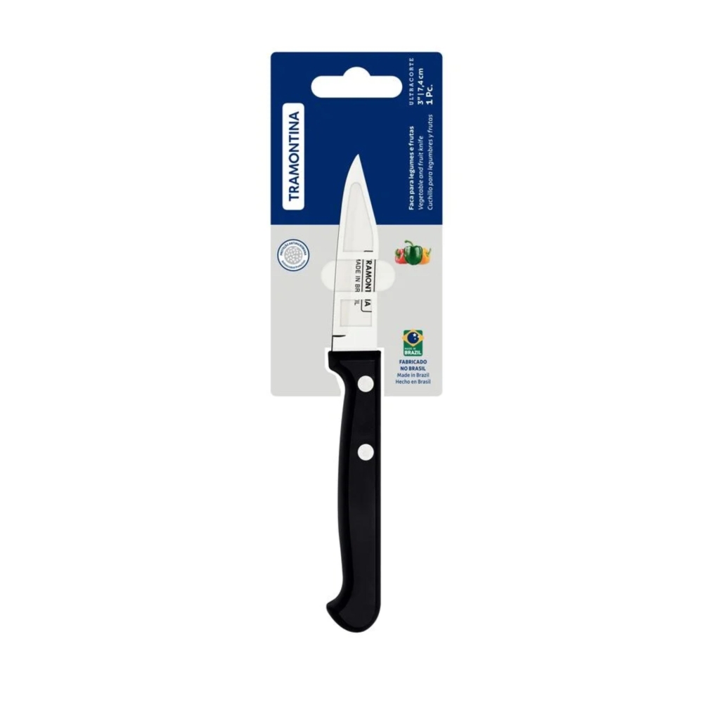 | Esta faca, de linha ultracorte da Tramontina, é projetada para tornear, esculpir e descascar legumes, vegetais e frutas. Essencial, é produzida com lâmina de 3 polegadas em aço inox que recebe tratamento térmico, dando maior durabilidade ao fio. O cabo em polipropileno na elegante cor preta é resistente e tem proteção antimicrobiana que inibe o crescimento de bactérias e fungos. |