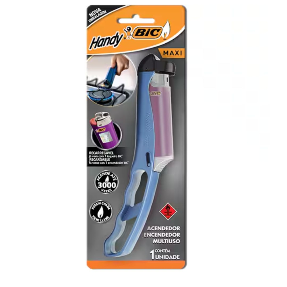 | O Acendedor de Fogão BIC Handy é ideal para acender fogão, vela, churrasqueira e lareira. É recarregável com 1 isqueiro BIC Maxi que equivale a até 75 caixas de fósforos com 40 unidades. Possui dispositivo de segurança para crianças. Seu manuseio é fácil e confortável, contando também com um design inovador. |