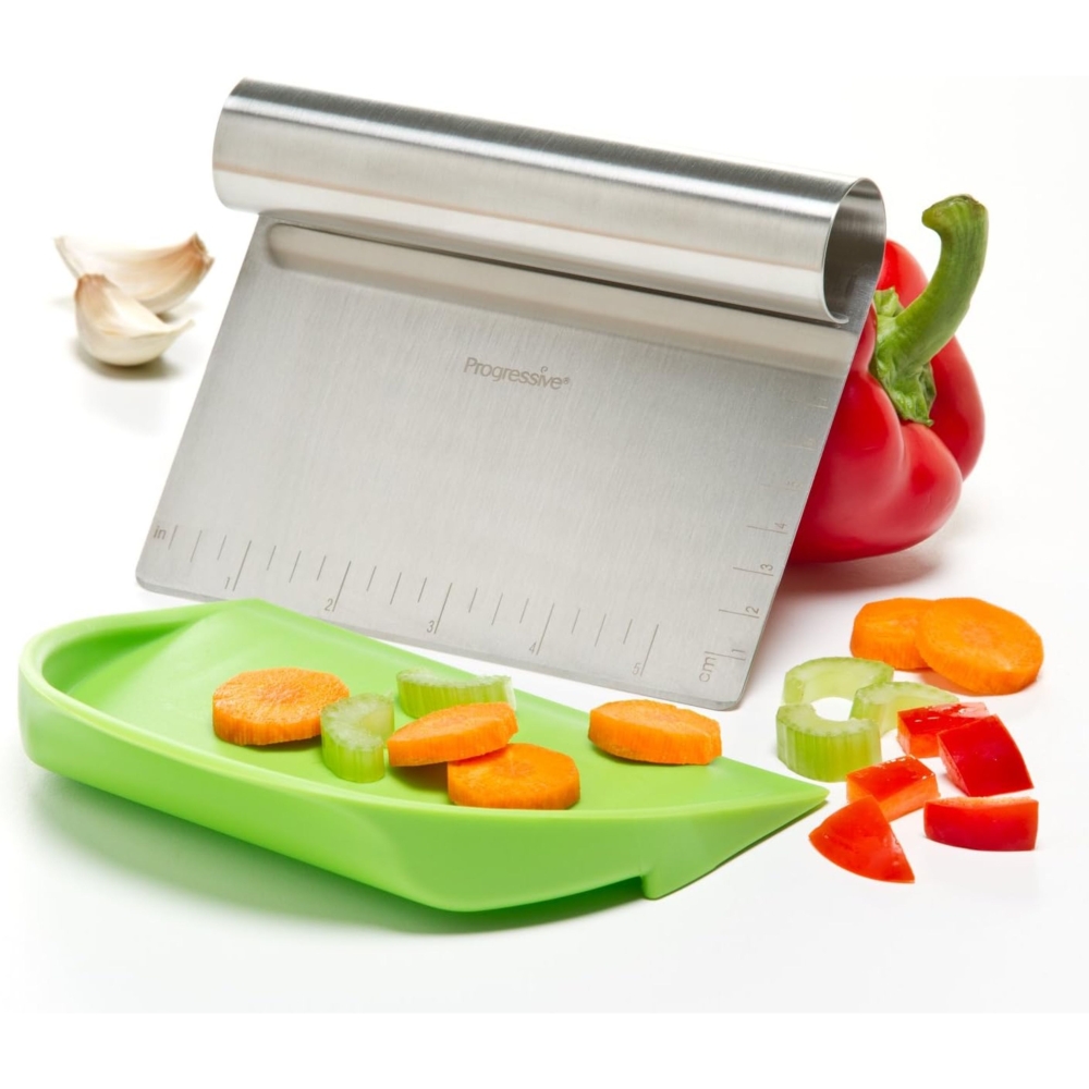 | A Espátula Lãmina Fixa Cortante da Progressive com marcador milimétrico auxilia na realização de cortes precisos, permitindo a preparação de pratos mais sofisticados. O produto acompanha um coletor de alimentos de design moderno, que facilita o transporte dos alimentos cortados de forma higiênica e segura para a panela. |