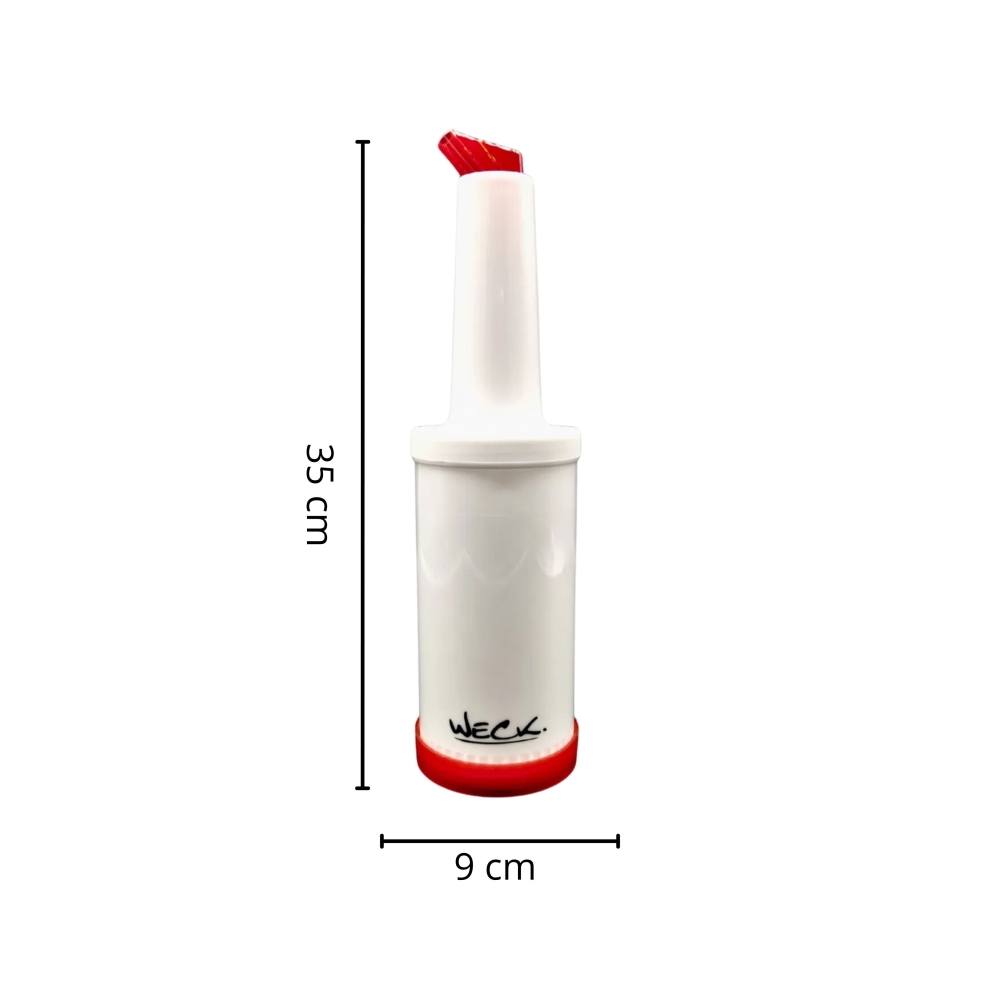 | A Garrafa Store N'Pour 1L da Weck é É ideal para armazenar líquidos e sólidos, muito utilizado para açúcar sólido, xarope de açúcar, sucos diversos, mixes de frutas, purês de frutas e molhos diversos. |