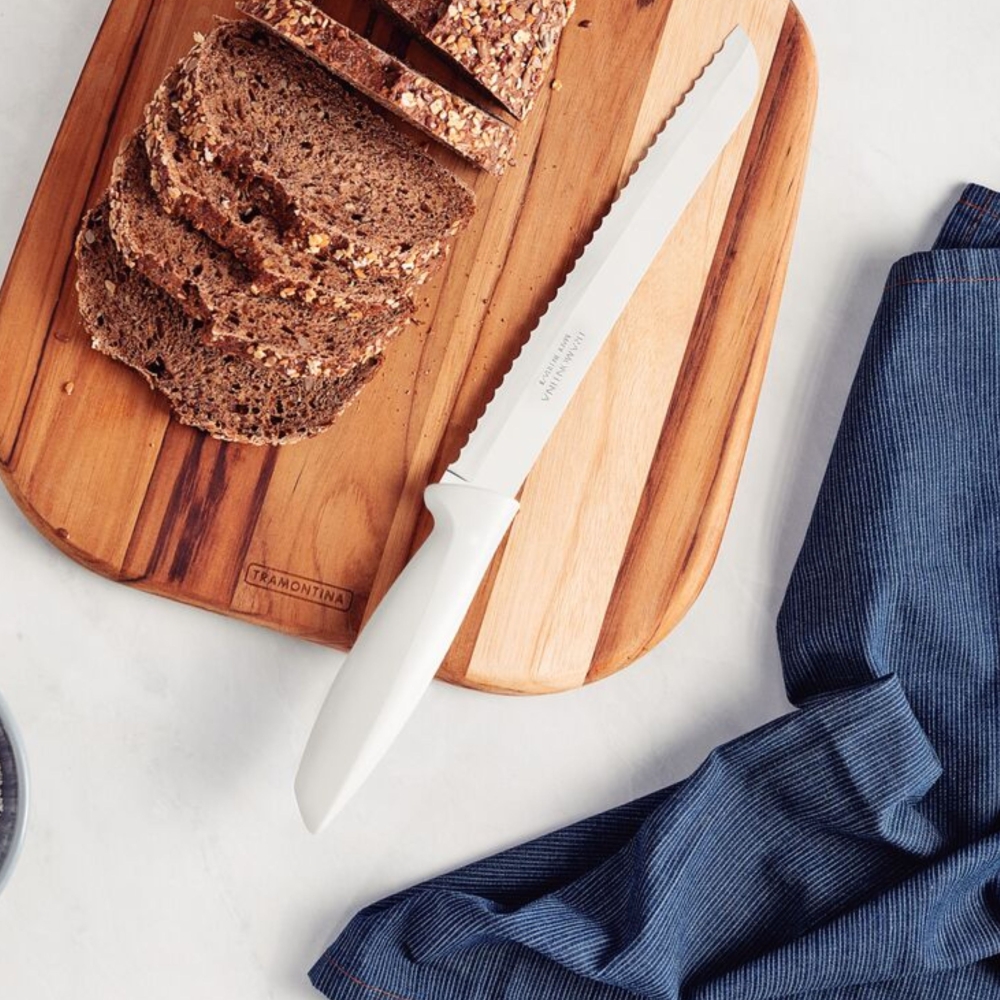 | A Faca de Pão 8 da Tramontina é perfeita para cortar diferentes pães sem amassá-lo, garantindo qualidade e durabilidade. Produzida com lâmina de 8 polegadas em aço inox, ela ainda possui um estiloso cabo em polipropileno off white. |