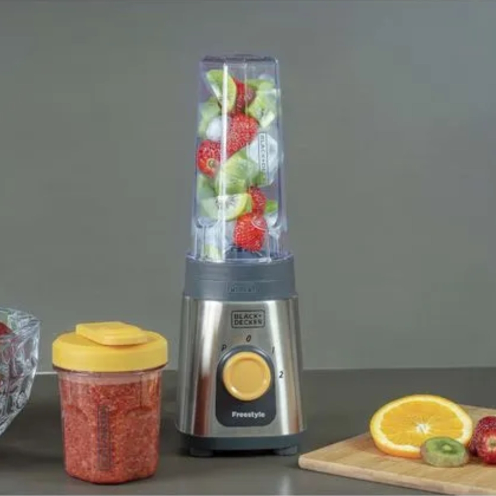 | O Liquidificador 2 em 1 da Black&Decker é compacto, fácil de armazenar e perfeito para preparar sucos, vitaminas e molhos. Inclui duas jarras (300 ml e 600 ml) com tampas vedadas para consumo direto. Com lâminas de aço inox e base antiderrapante, oferece praticidade e estabilidade durante o uso. |
