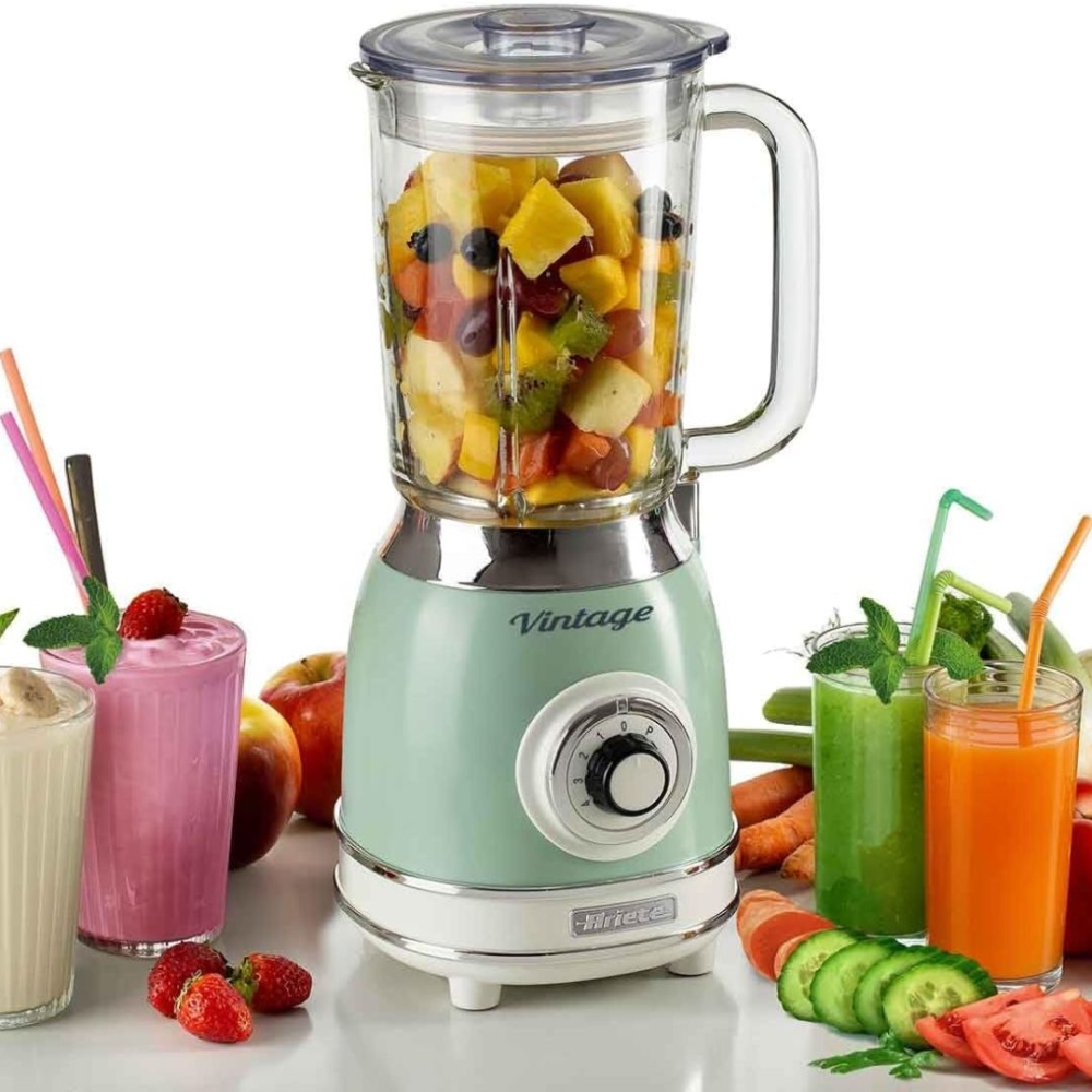 | Com o Liquidificador Vintage com copo de vidro da Ariete você pode preparar a bebida de sua preferência todos os dias, misturando os ingredientes e batendo-os uniformemente. O copo de vidro é resistente e as 4 lâminas de aço inox, aliadas às 4 velocidades disponíveis, são ideais para triturar tudo o que você preferir. Além disso, graças à conveniente tampa medidora, você pode inserir os ingredientes diretamente no copo do liquidificador pelo orifício na parte superior. |
