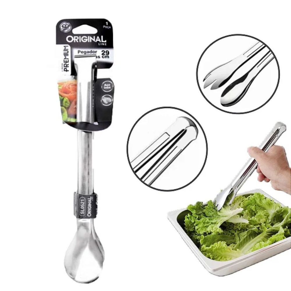 | Prepare as mais diversas receitas e sirva com higiêne e elegância. Para servir basta pressionar as hastes para pegar o alimento sem desperdício e sem sujeira. Ideal para usar em restaurantes, padarias, lanchonetes e na sua casa. |